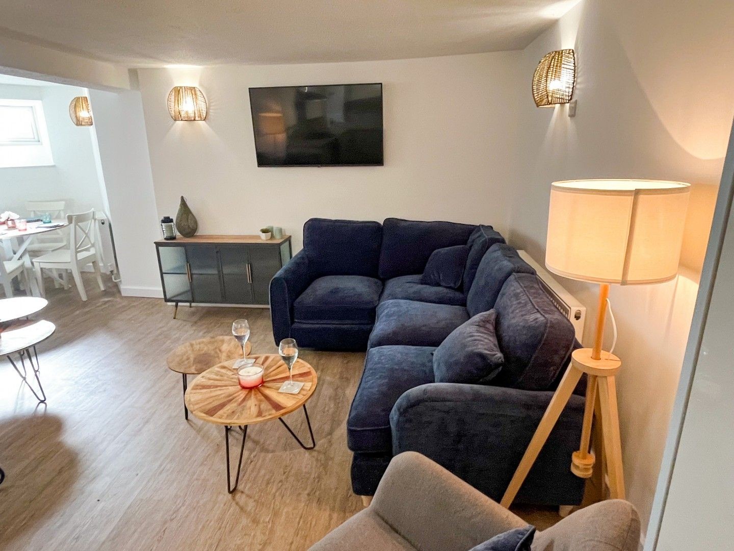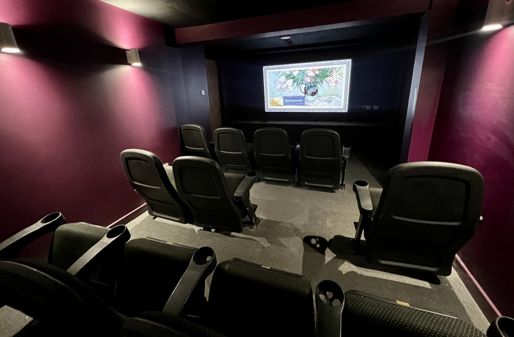 The Cinema Room has an 85" screen, cinema seating and mood lighting.