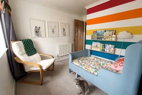 13' 6" x 14' 1" (4.14m x 4.3m) uPVC double glazed window to front elevation with window seat below. Deep cupboard over stairs with slatted shelving and fuse box. Loft access with retractable ladder providing access into the loft, which is boarded and has light. Traditional wood planked ceiling. Fitted carpet. Radiator. TV point. Ceiling light.